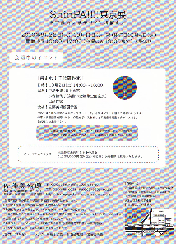 会期直前ですが、本年度も「ShinPA!!!!展」が佐藤美術館で開催されます。