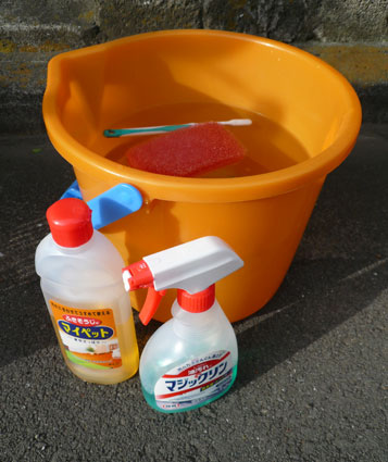 ちょっと汚れの目立つ所は「油用洗剤」を使ってゴシゴシと。