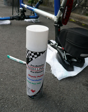 ライトとサドルやグリップ以外は満遍なくスプレーして磨く。