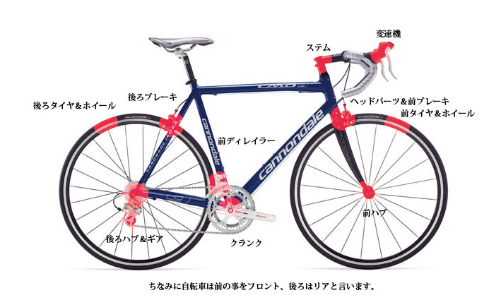 逆を言えば「回転する部品の集合体」とも言える自転車。