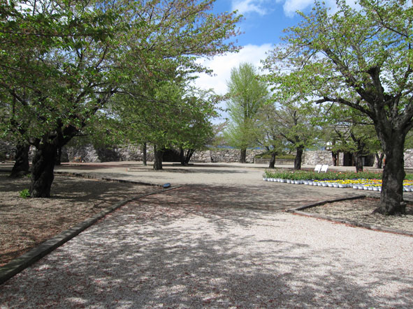 堅牢な石垣に囲まれた海津城は、なんとも言えず美しい。