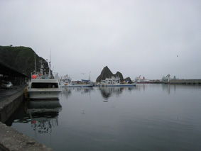 夕食前にウトロの港を見ていると、近所の小学生に不思議そうな目で見られる。