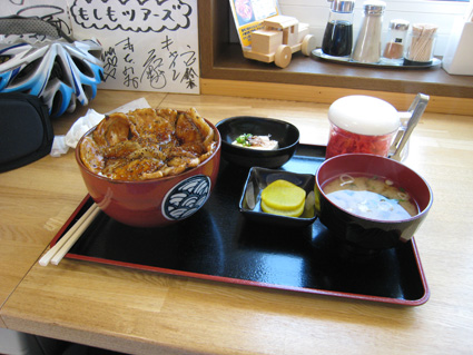 キャンプ場の受付は13時からなので、摩周湖駅前の「ぽっぽ亭」で豚丼定食を。