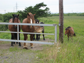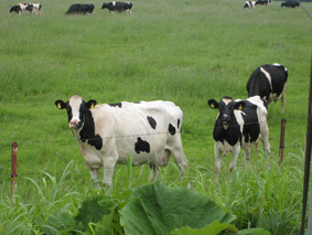 途中放牧している牛たちの写真を撮っていると「何々?」と牛たちが寄ってくる。