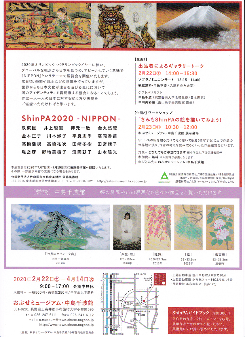 告知が遅くなりましたが2月22日(土)よりおぶせミュージアム・中島千波館で開催します「ShinPA2020-NIPPON-」展。